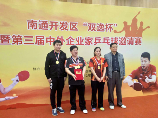10月24日,三圣石墨代表隊(duì)參加南通開發(fā)區(qū)“雙逸杯”暨第三屆中外企業(yè)家乒乓球邀請(qǐng)賽,通過(guò)一天的緊張角逐,過(guò)關(guān)斬將,最終在24支代表隊(duì)中脫穎而出,獲得本次比賽冠軍。