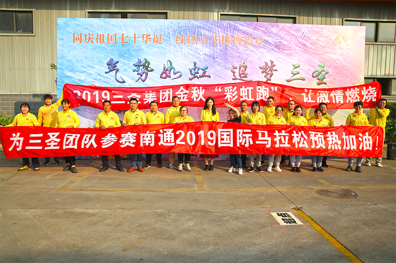 喜迎祖國七十華誕&預(yù)熱三圣團(tuán)隊亮相南通國際馬拉松賽……三圣集團(tuán)2019金秋“彩虹跑”絢麗呈現(xiàn)。