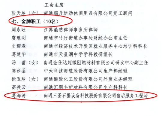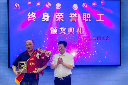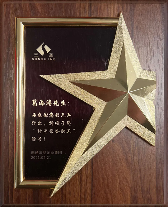 三圣奮斗史中閃耀著這樣一顆璀璨之星,他以堅(jiān)定的信念和不懈的努力,登上榮譽(yù)巔峰,成為開(kāi)發(fā)區(qū)當(dāng)之無(wú)愧的一名“金牌員工”,并被三圣集團(tuán)董事會(huì)、三圣工會(huì)授予“終身榮譽(yù)職工”的光榮稱號(hào)。