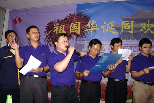 9月22日,全體三圣人歡聚一堂,同慶祖國華誕,共迎中秋佳節(jié)。感人至深的手舞《感恩的心》、詼諧幽默的小品《三圣家庭》、激情澎湃的詩朗誦《我的祖國》、獨(dú)樹一幟的三句半《話說三圣》以及相聲、快板書等一個個三圣人自編自演的節(jié)目集中體現(xiàn)了三圣大家庭的企業(yè)文化精髓,同時(shí)表達(dá)了對祖國母親的深深祝福。由三圣人自己點(diǎn)燃放飛的69盞祝愿燈將聯(lián)歡會推向了高潮,大家祝愿三圣事業(yè)六六大順,三圣好運(yùn)長長久久。董事長帶領(lǐng)高管團(tuán)隊(duì)合唱的一曲《朋友》充分彰顯了三圣管理層的超強(qiáng)凝聚力和戰(zhàn)斗力。晚會在大合唱《同一首歌》的歌聲中圓滿結(jié)束。